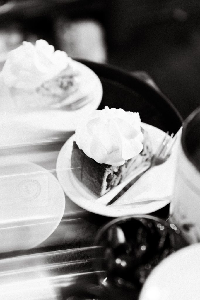 Wie in het weekend langskomt, heeft geluk: dan komen er naast onze legendarische appeltaart nog veel meer zoete verleiders uit de oven. Kersentaart met chocolade, worteltaart met walnoten, blondies van witte chocolade en andere taartige verrassingen. Bestel je er eentje? Dan krijg je er deze belofte gratis bij: elke hap smaakt een beetje naar vroeger, maar dan beter.